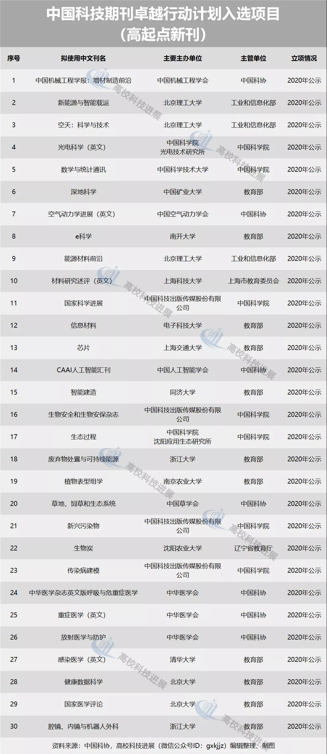 近日,中国科协发布《关于下达中国科技期刊卓越行动计划高起点新刊入选项目的通知》,根据《关于申报2020年度中国科技期刊卓越行动计划高起点...